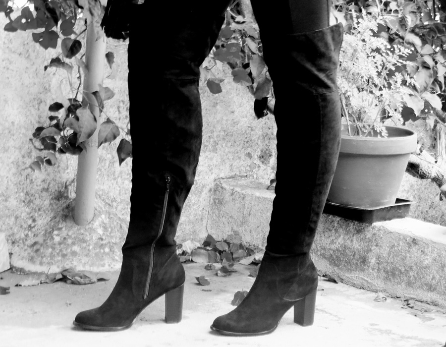 Hoje trago-vos mais um look, já a pensar nos dias mais frescos de Outono, é um look totalemente edgy, eu apaixonei-me por estas botas over the knee que vão estar totalmente in neste outono/inverno, espero que gostem do look;